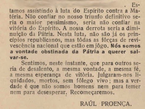 Resposta ao sr. Raul Proença, de 13 Dezembro de 1921] e na