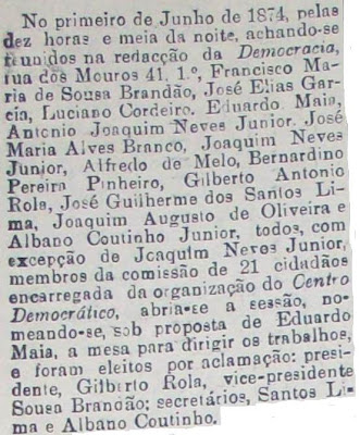 Um dos colaboradores eventuais deste jornal, o republicano histórico Albano Coutinho recorda alguns acontecimentos que testemunhou quando bastante jovem. Com referências interessantes aos primeiros momentos do Partido Republicano e à formação do Centro Democrático em Lisboa em 1 de Junho de 1874. Repare-se como algumas personalidades entretanto evoluiram noutros sentidos políticos, mas a esmagadora maioria mostrou convicções e coerência que, cada vez são mais difíceis de encontrar.