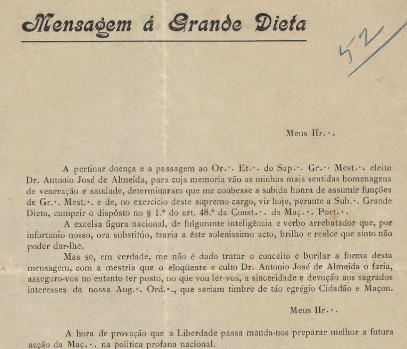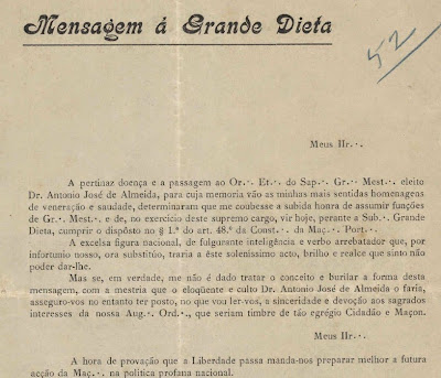De facto, com a morte de Magalhães Lima (7 de Dezembro de 1928) sucedeu-lhe, por eleição no Grão-Mestrado, António José de Almeida, tendo como Adjunto, o coronel Oliveira Simões [eleição validada pelo presidente da Grande Dieta, António Augusto Curson, o dia 18 de Maio de 1928 – cf. António Ventura, “Maçonaria em Portugal”, p. 670]. No pedido de dispensa de António José de Almeida do cargo, dado se encontrar muito debilitado pela doença (morre a 31 de Outubro de 1929), os corpos gerentes do GOL dão posse [20 de Maio de 1929] ao coronel Oliveira Simões, ficando com o cargo de assegurar a direcção a Ordem. Na noite de 16 de Abril de 1929, quando o Grão-mestre Adjunto Oliveira Simões se preparava para dar uma conferência no Grémio Lusitano, em substituição do Grão-mestre Norton de Matos, o palácio maçónico é assaltado pela polícia e a GNR, a soldo da ditadura militar, sendo presos e identificados todos os maçons, dando-se início á “grande perseguição” [cf. Oliveira Marques, “A Maçonaria Portuguesa e o Estado Novo”, 2ª ed. 1983, p. 59]. A 1 de Julho desse ano, o coronel Oliveira Simões, na qualidade de Grão-mestre Adjunto dirige uma mensagem ao povo maçónico.