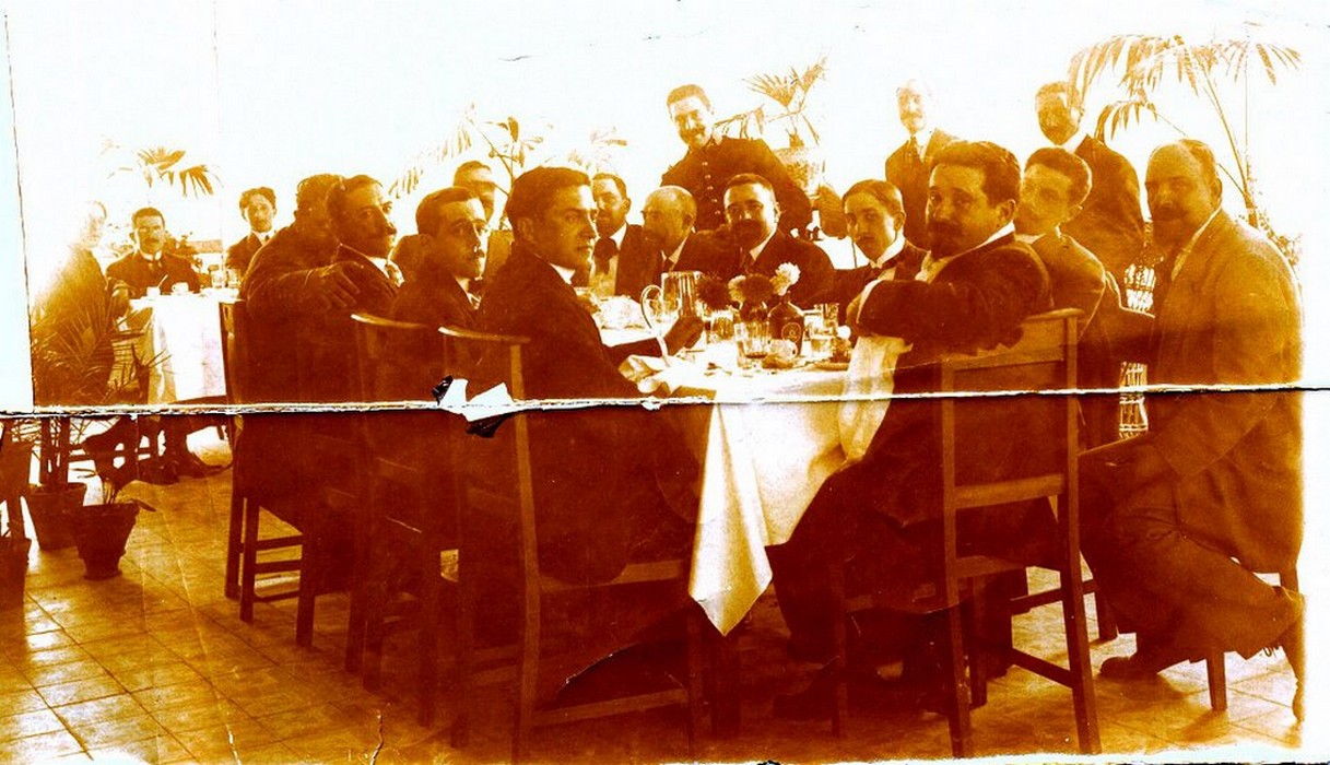 ► [PEDIDO] - "Alguém me ajuda a identificar os restantes convivas deste repasto? — com Dr. João Soares [ao lado de Afonso Costa - 1º esquerda foto], Dr. Simão José [de pé, ao fundo na foto], Dr. António Granjo [sentado à frente de Simão José] e Dr. Afonso Costa [à frente, no topo da mesa]".