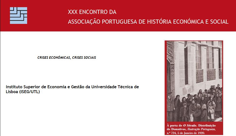 Subordinado ao tema global: Crises Económicas, Crises Sociais, vai realizar-se no Instituto Superior de Economia e Gestão da Universidade Técnica de Lisboa (ISEG/UTL), nos próximos dias 19 e 20 de Novembro de 2010, o XXX Encontro da Associação Portuguesa de História Económica e Social.